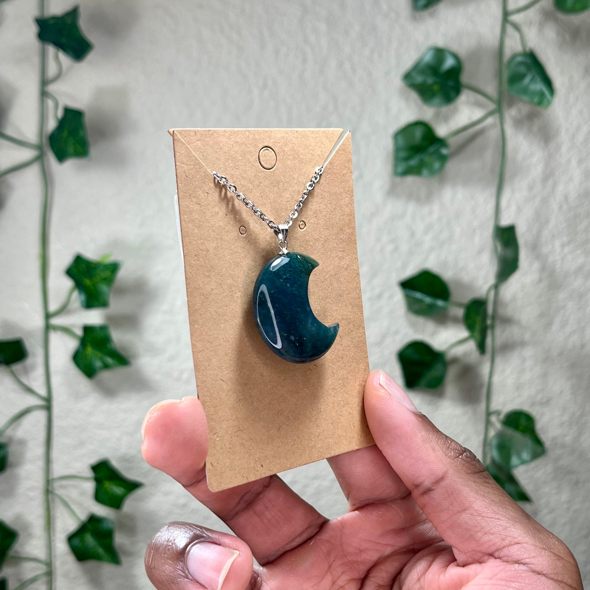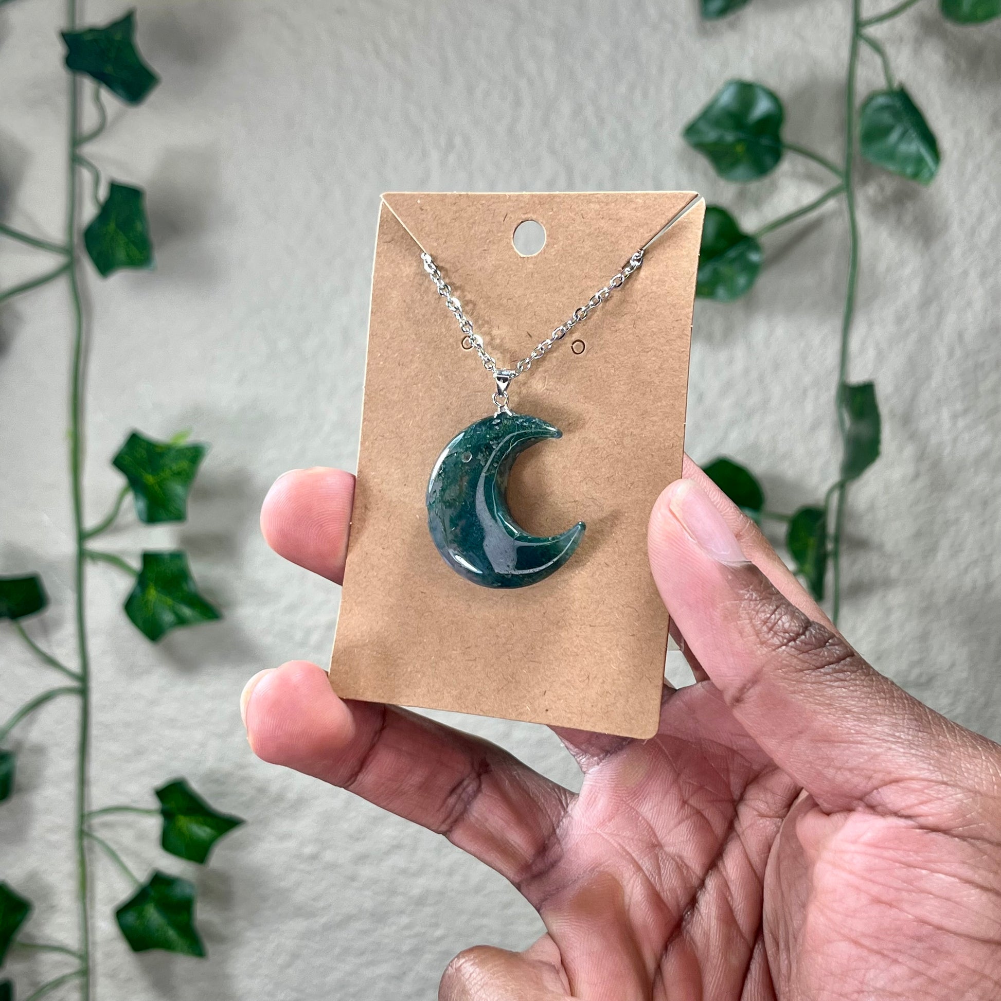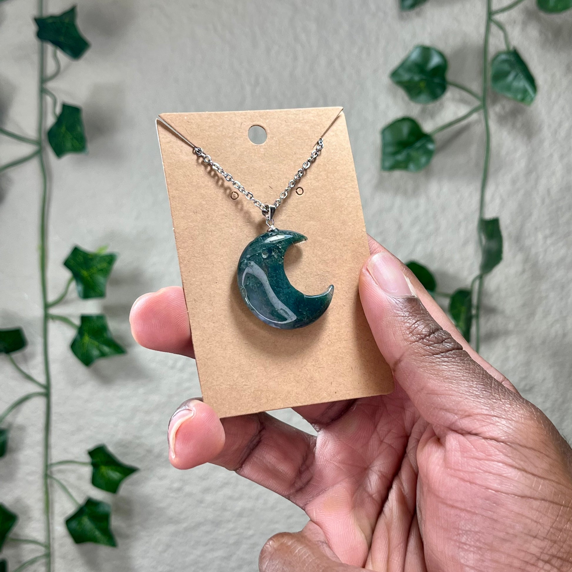 Moss Agate Moon Necklaces